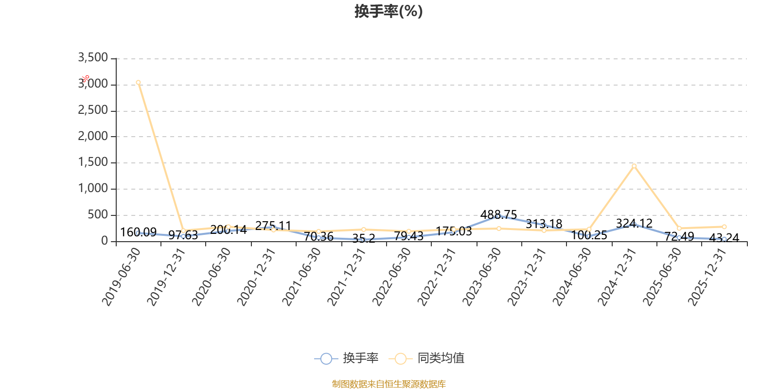 截至2025年12月31日,基金最近一年换手率约118.76%,持续2年低于同类均值。