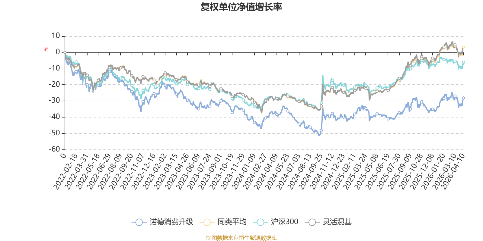 截至4月10日,诺德消费升级近三个月复权单位净值增长率为1.41%,位于同类可比基金464/1287;近半年复权单位净值增长率为1.91%,位于同类可比基金798/1286;近一年复权单位净值增长率为19.88%,位于同类可比基金850/1286;近三年复权单位净值增长率为-3.06%,位于同类可比基金1041/1286。