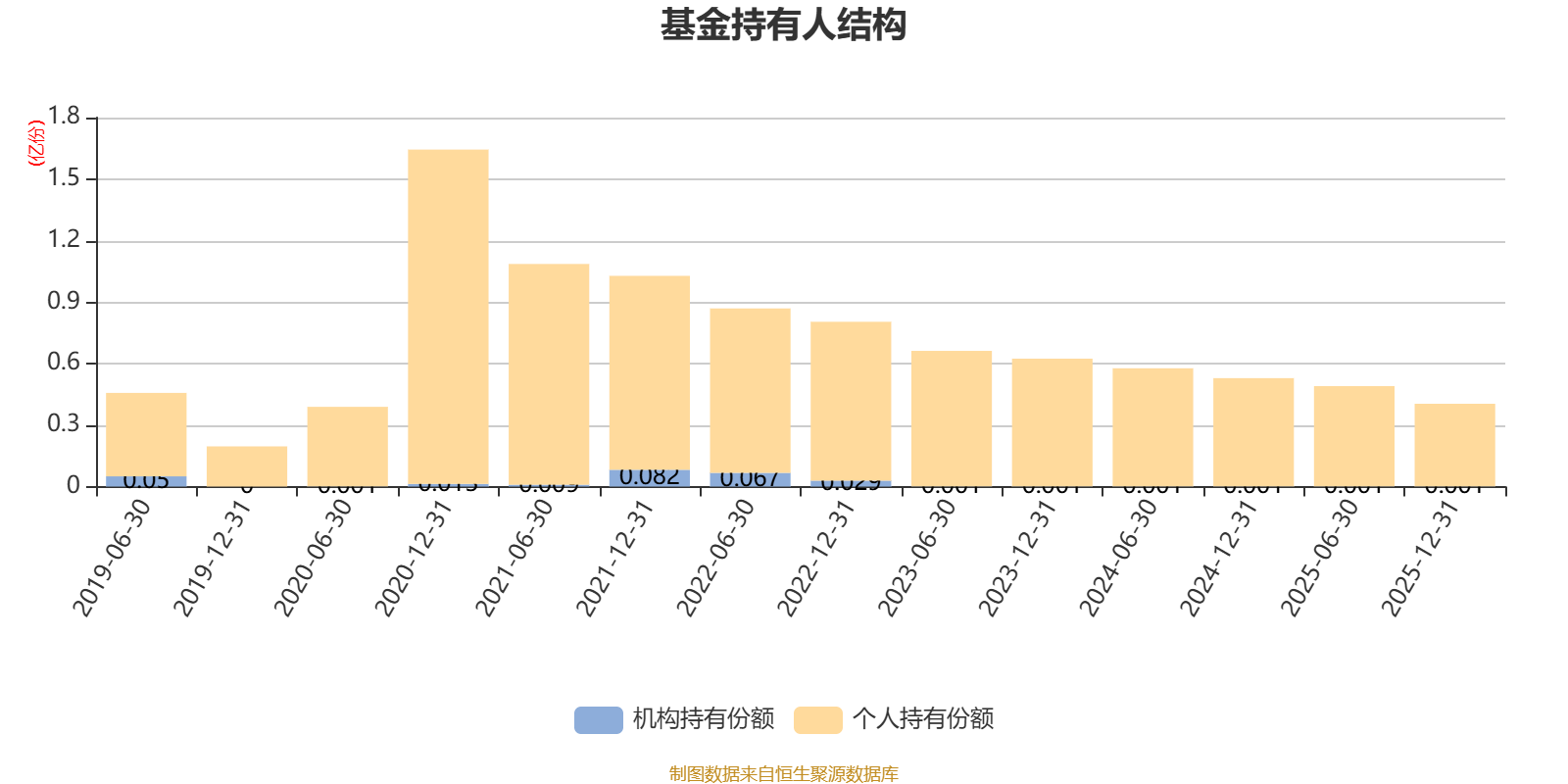 截至2025年12月31日,基金持有人共计4236户,合计持有4034.4万份。其中管理人员工持有26.01万份,占比0.64%,机构持有份额占比0.15%,个人投资者占比99.85%。