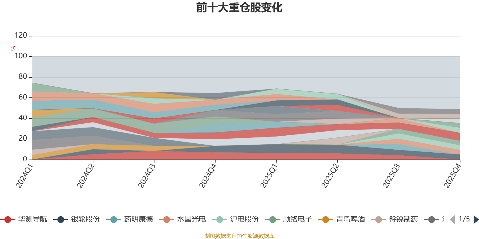 截至2025年末,基金十大重仓股分别是东鹏饮料、银轮股份、鹏鼎控股、鼎龙股份、山西汾酒、水晶光电、沪电股份、恒瑞医药、顺络电子、蓝思科技。