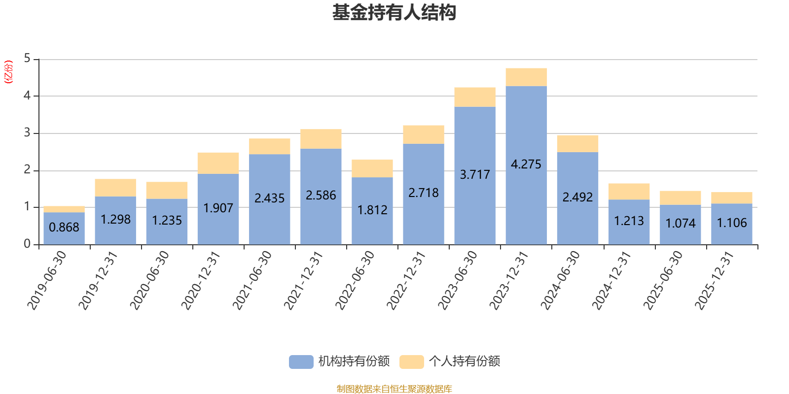 截至2025年12月31日,基金持有人共计2089户,合计持有1.41亿份。其中管理人员工持有513.73万份,占比3.63%,机构持有份额占比78.19%,个人投资者占比21.81%。