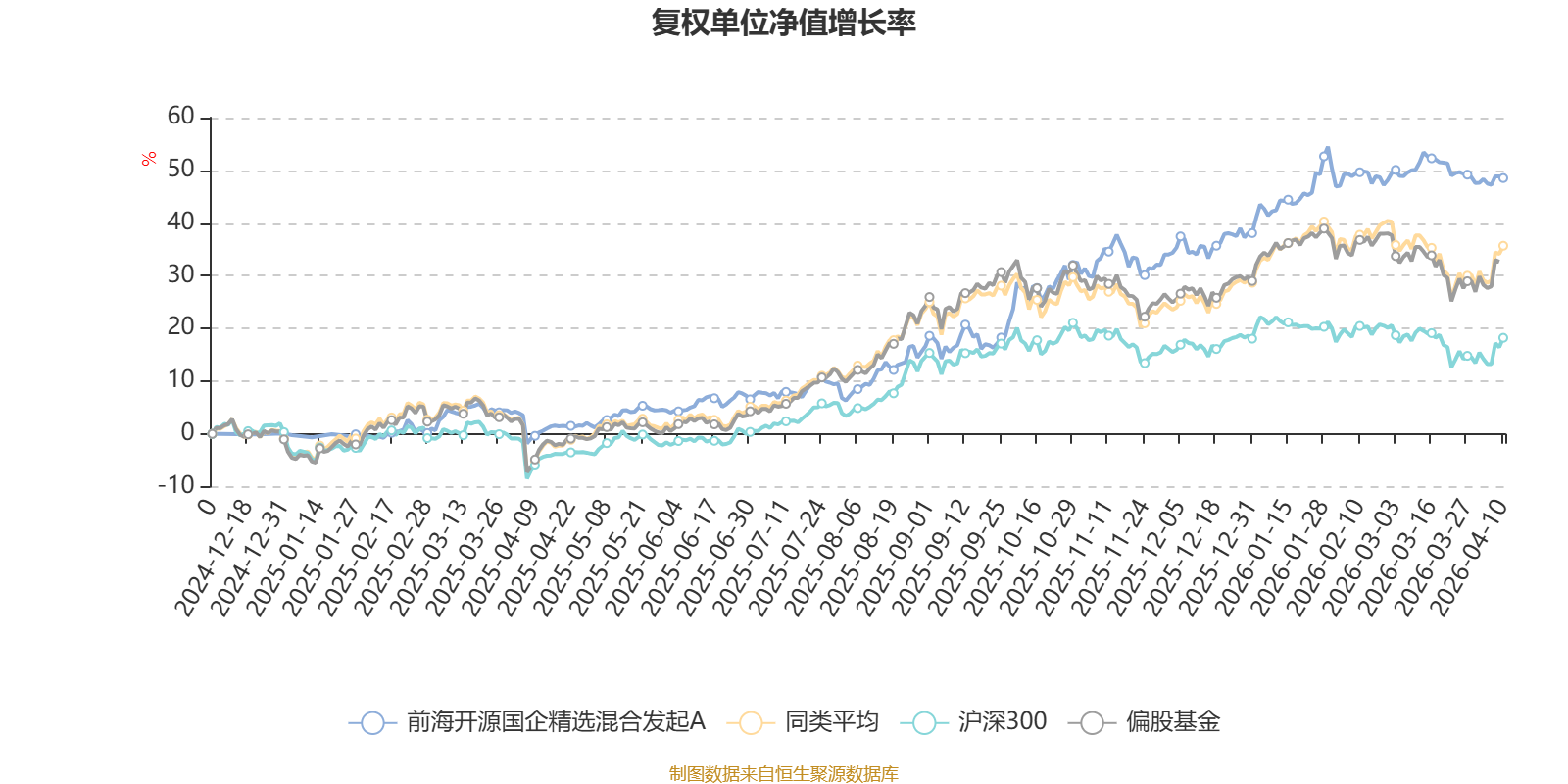 截至4月10日,前海开源国企精选混合发起A近三个月复权单位净值增长率为4.43%,位于同类可比基金166/689;近半年复权单位净值增长率为16.39%,位于同类可比基金104/689;近一年复权单位净值增长率为48.17%,位于同类可比基金223/685。