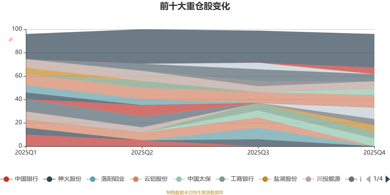 该基金持股集中度较高。截至2025年末,基金十大重仓股分别是中国移动、中国海洋石油、中国太保、工商银行、紫金矿业、招商银行、中国黄金国际、山东黄金、西部矿业、盐湖股份。