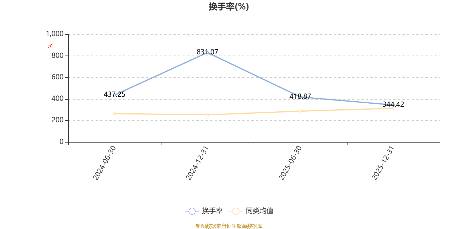 截至2025年12月31日,基金最近一年换手率约749.75%,持续高于同类均值。
