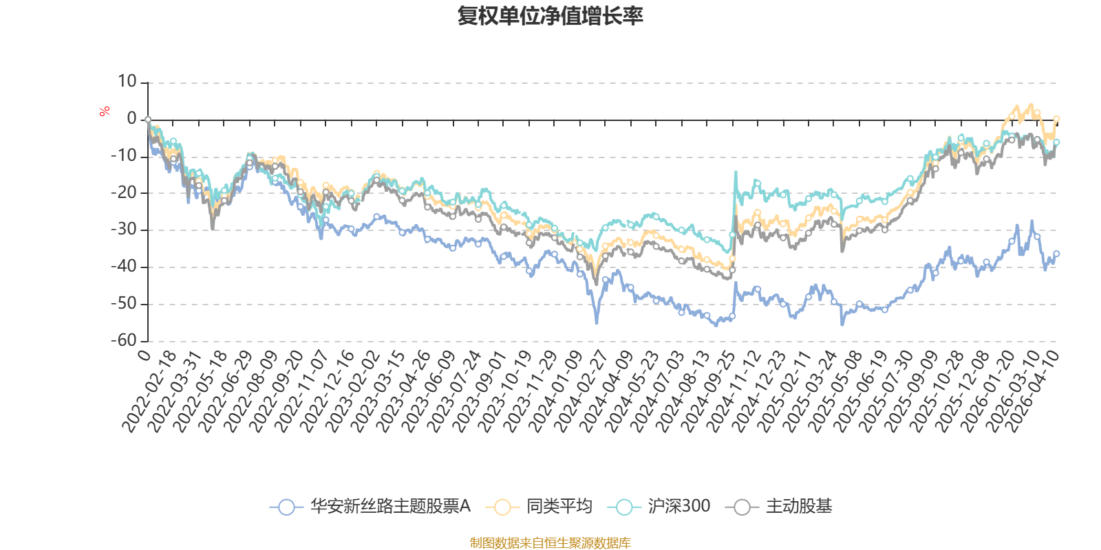 截至4月10日,华安新丝路主题股票A近三个月复权单位净值增长率为-1.21%,位于同类可比基金92/167;近半年复权单位净值增长率为1.44%,位于同类可比基金112/167;近一年复权单位净值增长率为36.58%,位于同类可比基金96/165;近三年复权单位净值增长率为-10.43%,位于同类可比基金143/157。