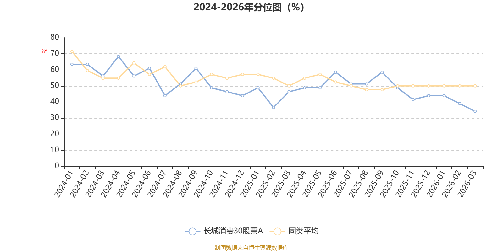 通过所选区间该基金净值增长率分位图,可以观察该基金与同类基金业绩比较情况。图为坐标原点到区间内某时点的净值增长率在同类基金中的分位数。