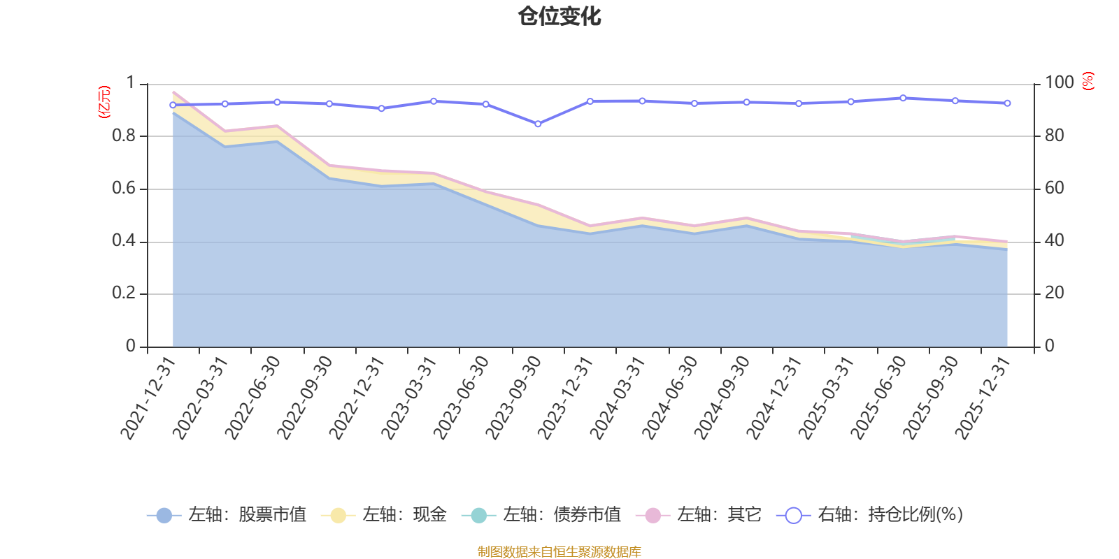 据定期报告数据统计,近三年平均股票仓位为92.46%,同类平均为88.34%。2025年上半年末基金达到94.64%的最高仓位,2023年三季度末最低,为84.79%。