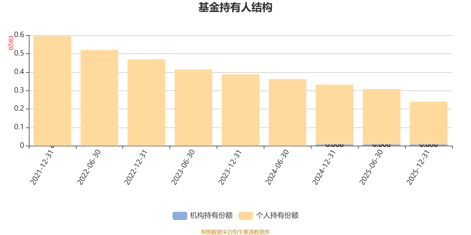截至2025年12月31日,基金持有人共计586户,合计持有2396.49万份。机构持有份额占比3.40%,个人投资者占比96.60%。