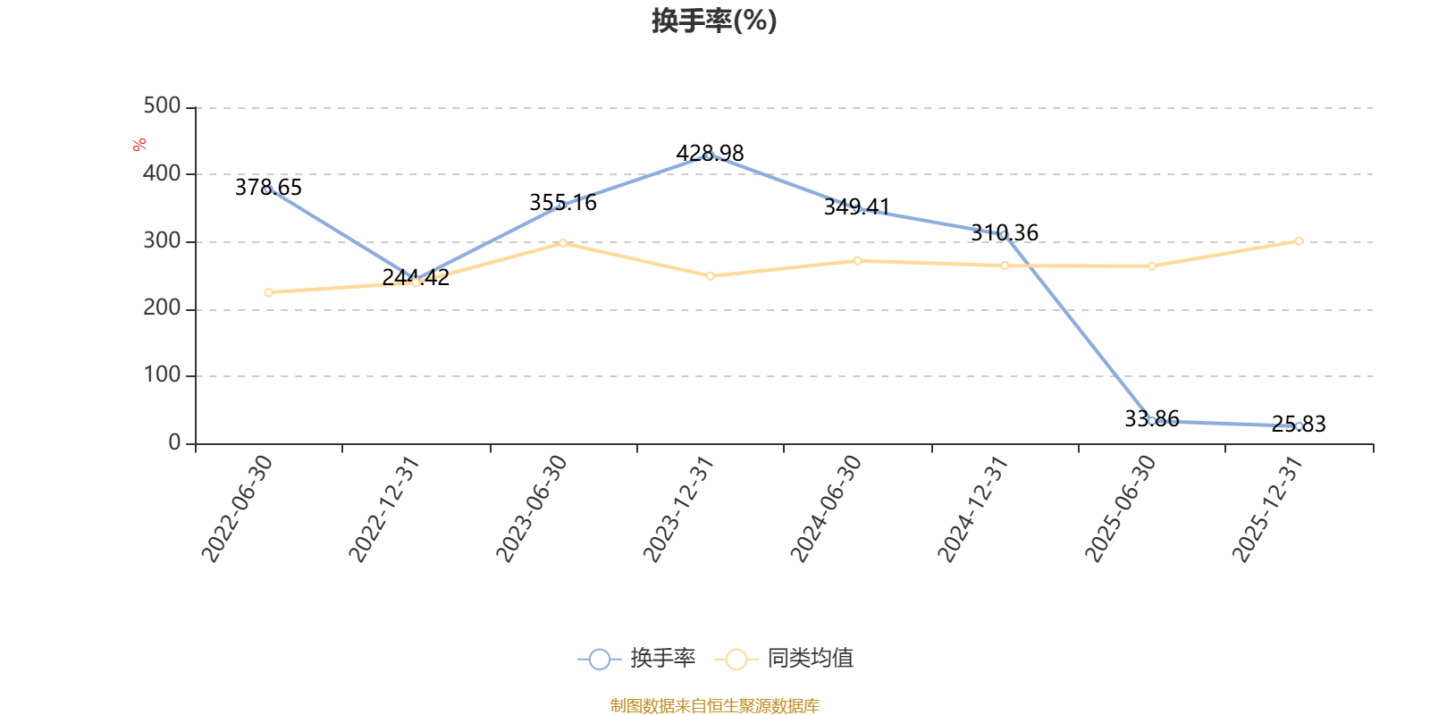 截至2025年12月31日,基金最近一年换手率约59.53%,持续1年低于同类均值。