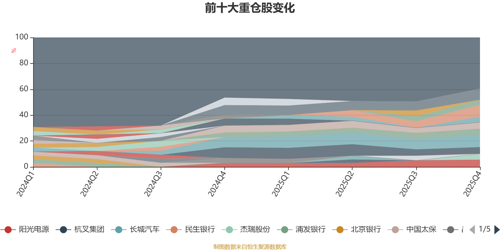 截至2025年末,基金十大重仓股分别是潍柴动力、美的集团、海尔智家、阳光电源、格力电器、特变电工、杰瑞股份、正泰电器、豪迈科技、中创智领。