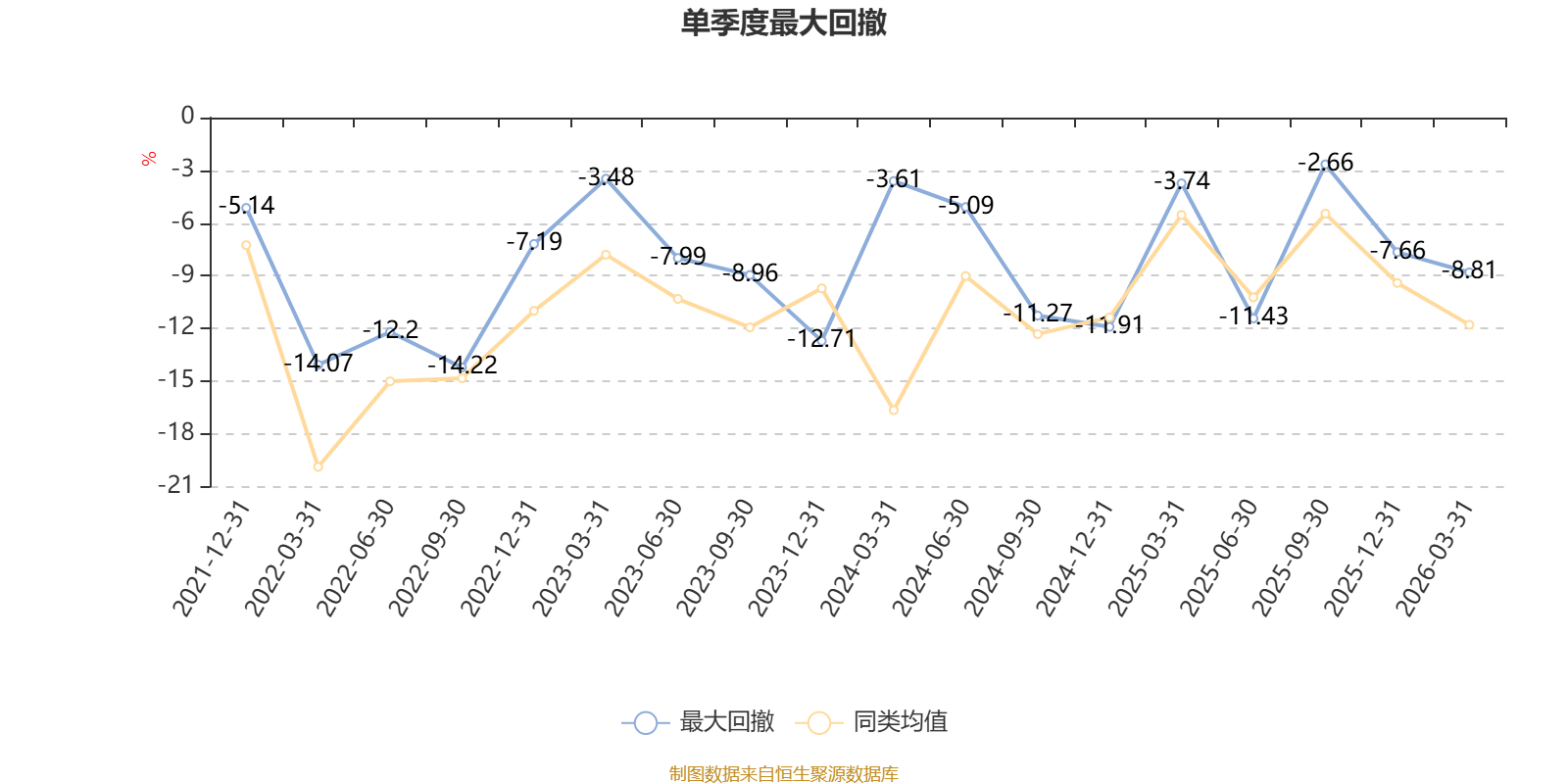截至4月10日,基金近三年最大回撤为22.84%,同类可比基金排名13/86。单季度最大回撤出现在2022年三季度,为14.22%。
