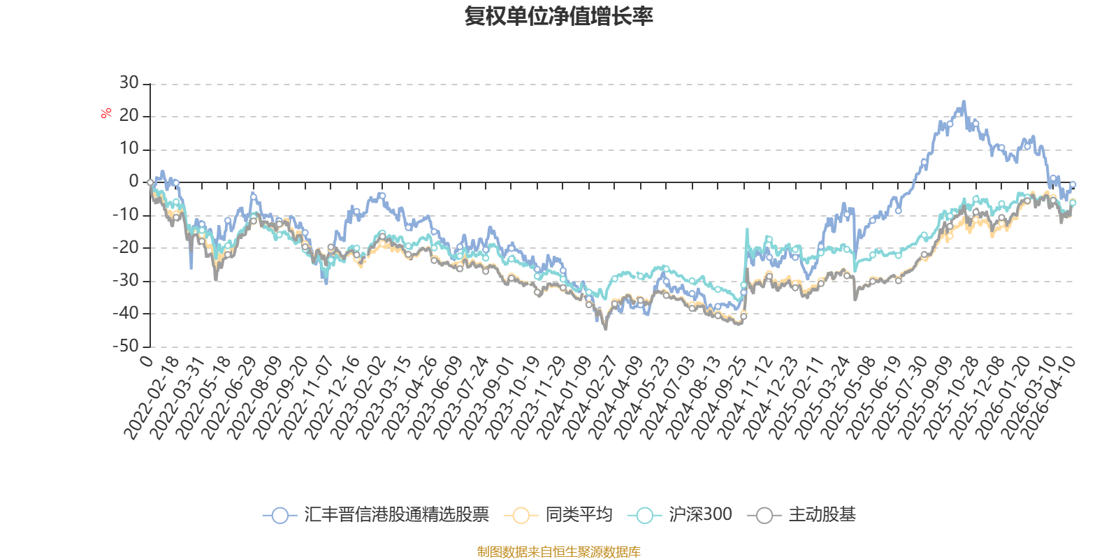 截至4月10日,汇丰晋信港股通精选股票近三个月复权单位净值增长率为-10.08%,位于同类可比基金113/121;近半年复权单位净值增长率为-18.30%,位于同类可比基金119/121;近一年复权单位净值增长率为21.18%,位于同类可比基金90/120;近三年复权单位净值增长率为12.38%,位于同类可比基金57/90。