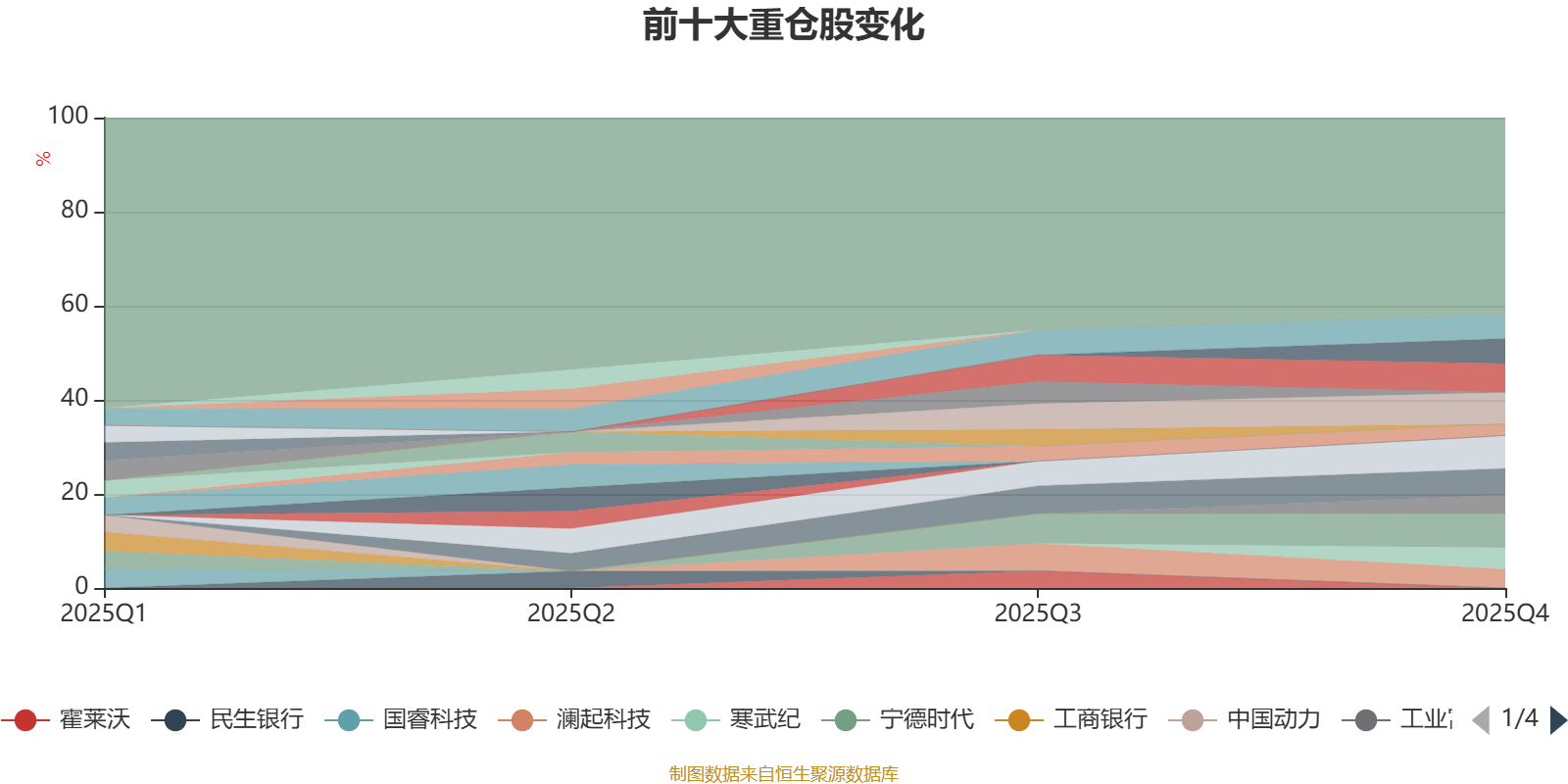 截至2025年末,基金重仓股分别是宁德时代、楚江新材、新易盛、信息发展、上海复旦、中际旭创、拓普集团、寒武纪、澜起科技、工业富联、复旦微电。