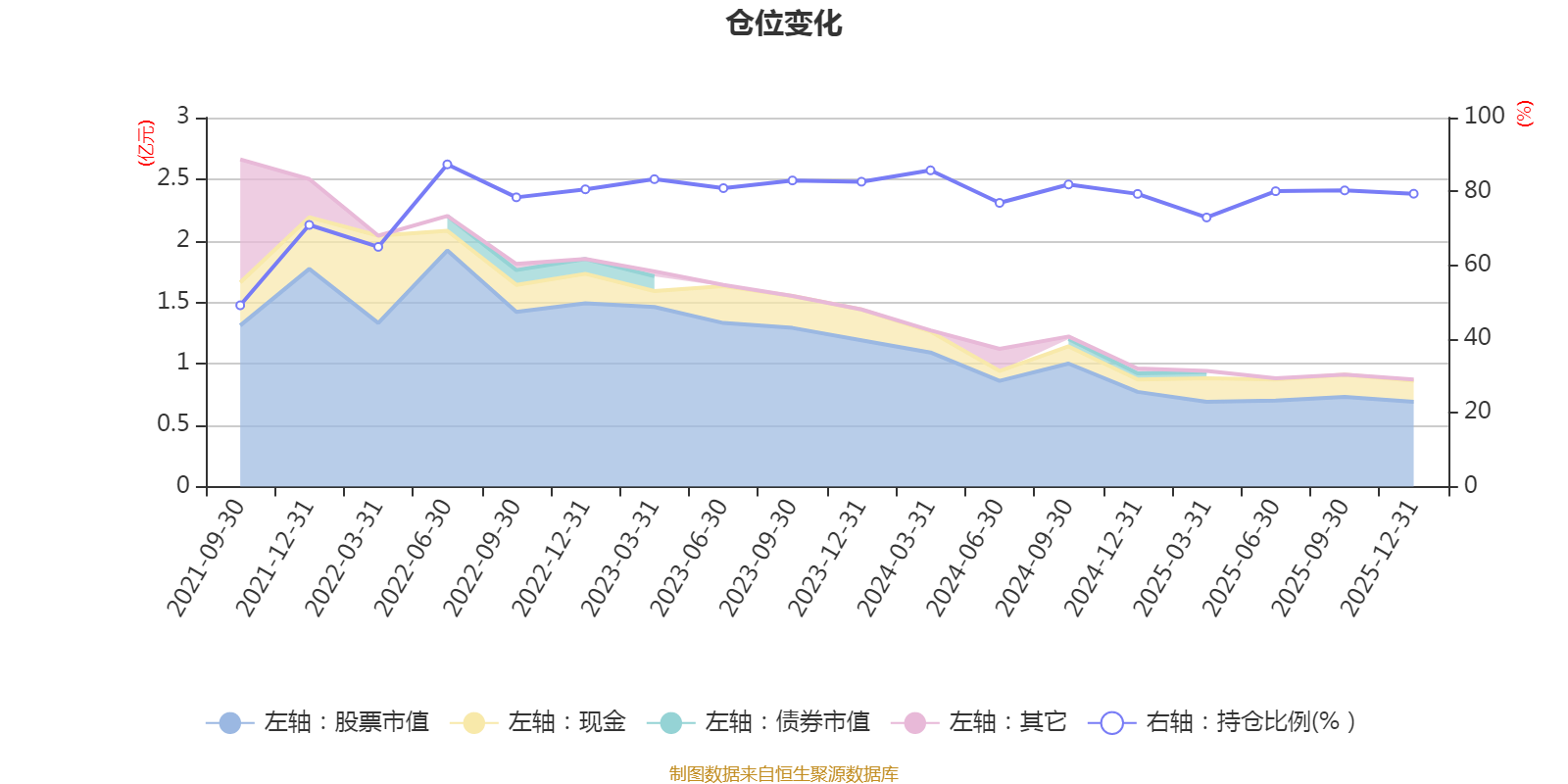 据定期报告数据统计,近三年平均股票仓位为80.52%,同类平均为87.26%。2022年上半年末基金达到87.32%的最高仓位,2021年三季度末最低,为49.13%。