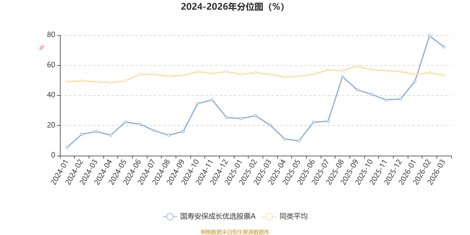 通过所选区间该基金净值增长率分位图,可以观察该基金与同类基金业绩比较情况。图为坐标原点到区间内某时点的净值增长率在同类基金中的分位数。