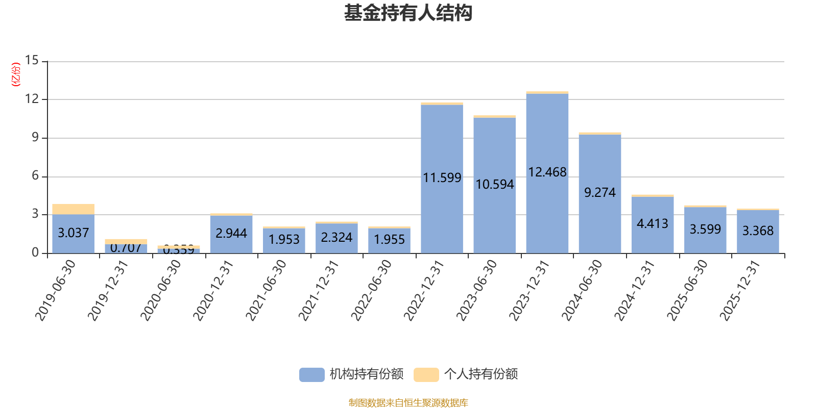 截至2025年12月31日,基金持有人共计2206户,合计持有3.48亿份。其中管理人员工持有34.4万份,占比0.10%,机构持有份额占比96.72%,个人投资者占比3.28%。