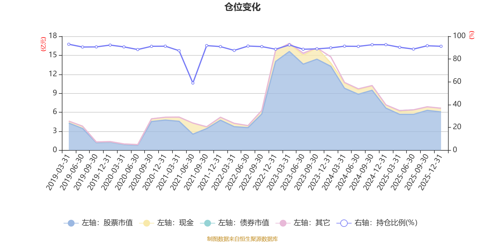 据定期报告数据统计,近三年平均股票仓位为90.81%,同类平均为88.27%。2019年一季度末基金达到93.02%的最高仓位,2021年上半年末最低,为58.97%。