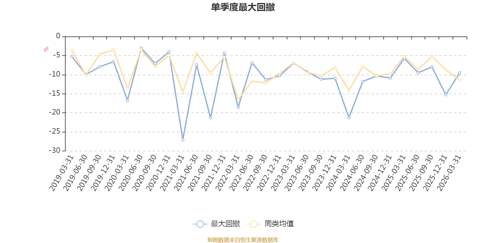 通过所选区间该基金净值增长率分位图,可以观察该基金与同类基金业绩比较情况。图为坐标原点到区间内某时点的净值增长率在同类基金中的分位数。