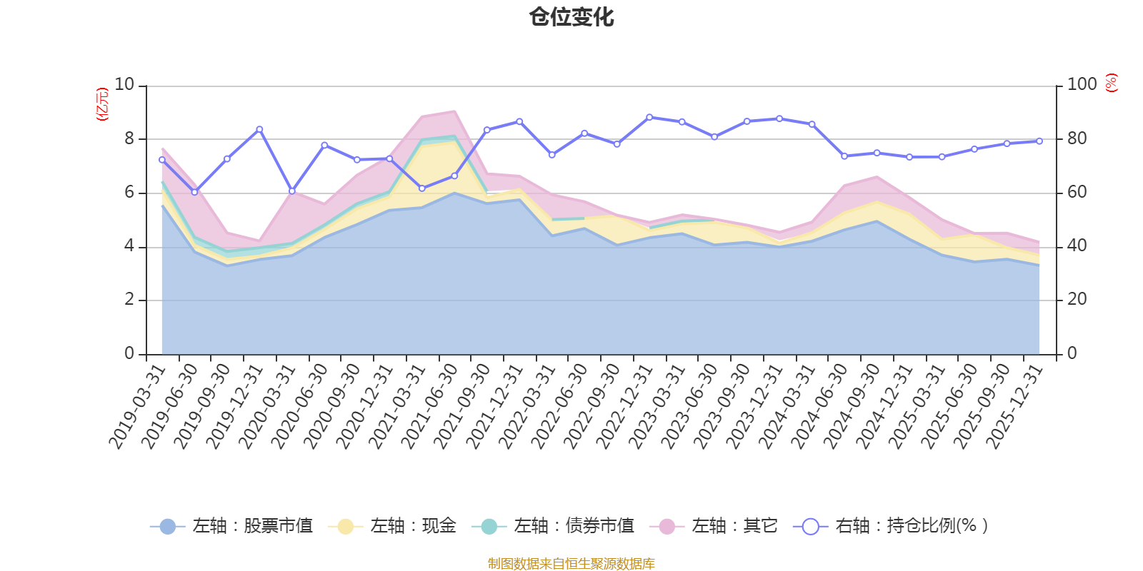 据定期报告数据统计,近三年平均股票仓位为79.79%,同类平均为72.57%。2022年末基金达到88.26%的最高仓位,2019年上半年末最低,为60.35%。