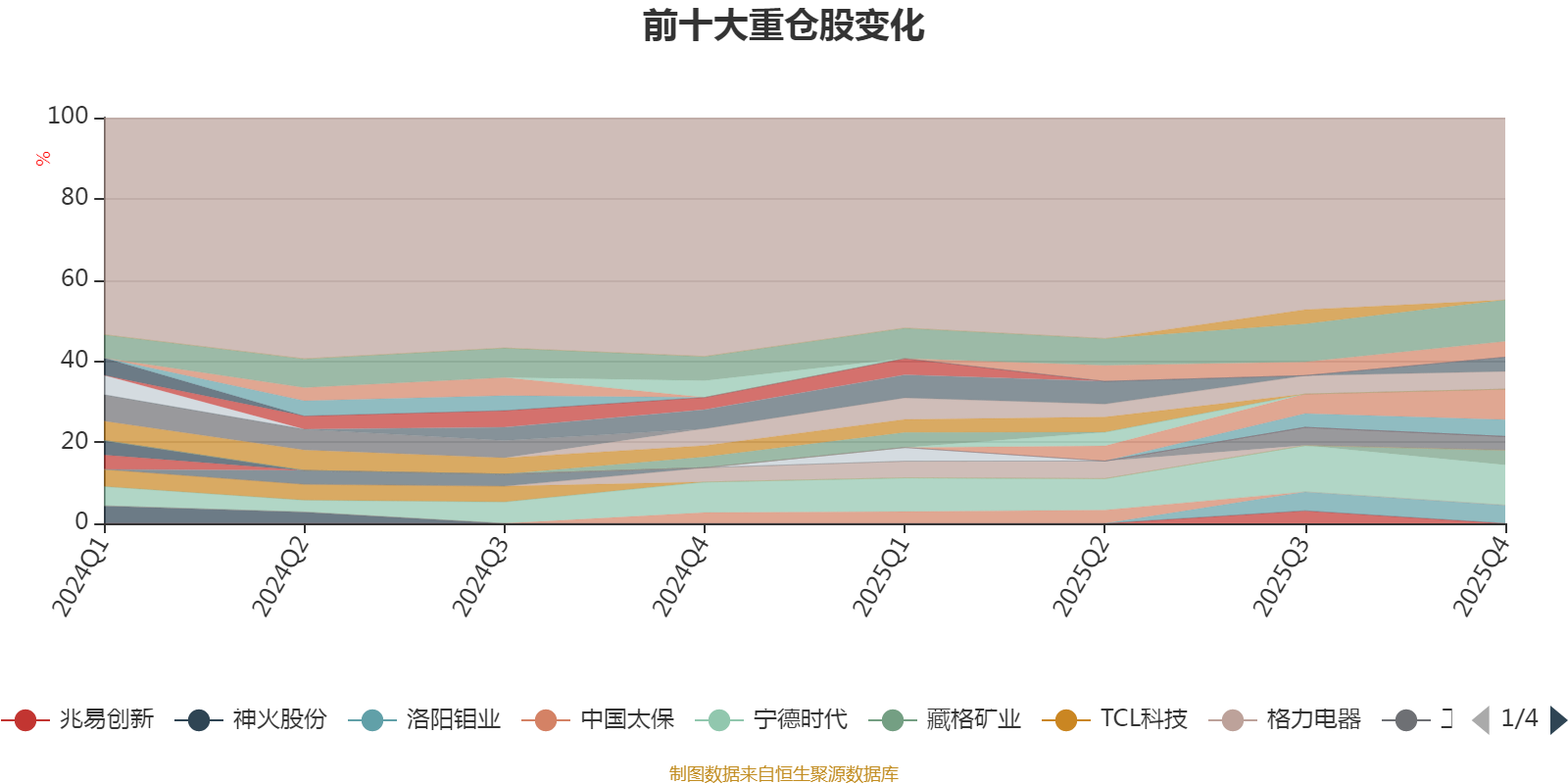 截至2025年末,基金十大重仓股分别是紫金矿业、宁德时代、中国平安、洛阳钼业、蓝思科技、睿创微纳、招商银行、藏格矿业、美的集团、工业富联。