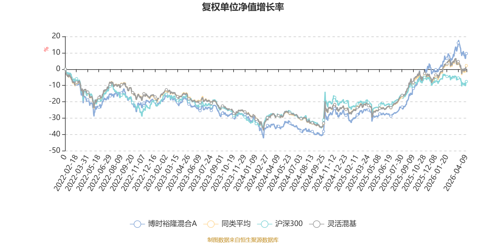 截至4月9日,博时裕隆混合A近三个月复权单位净值增长率为3.21%,位于同类可比基金264/1287;近半年复权单位净值增长率为10.54%,位于同类可比基金227/1286;近一年复权单位净值增长率为56.62%,位于同类可比基金285/1286;近三年复权单位净值增长率为32.96%,位于同类可比基金312/1286。