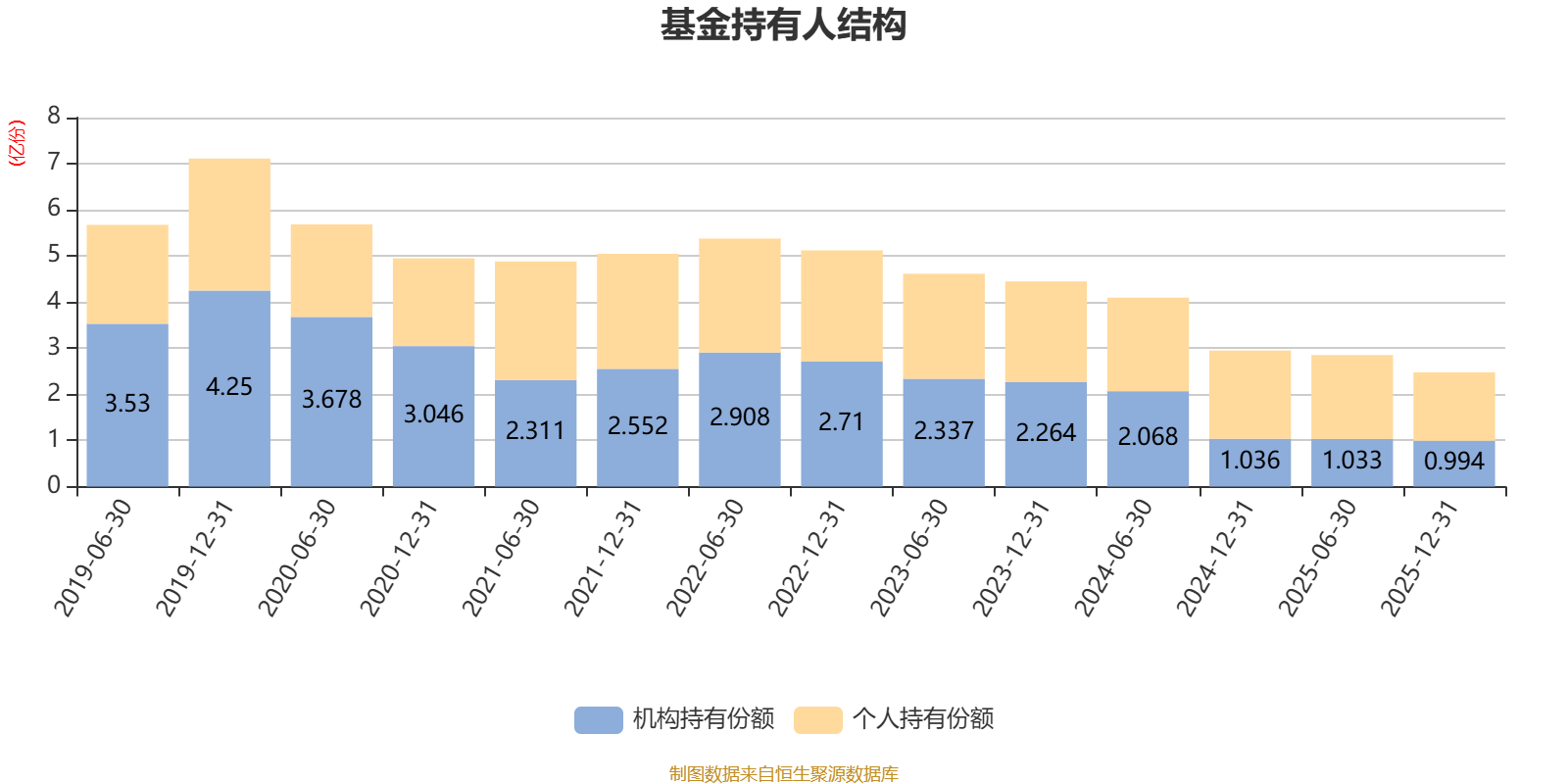 截至2025年12月31日,基金持有人共计2.23万户,合计持有2.48亿份。其中管理人员工持有15.22万份,占比0.06%,机构持有份额占比40.12%,个人投资者占比59.88%。