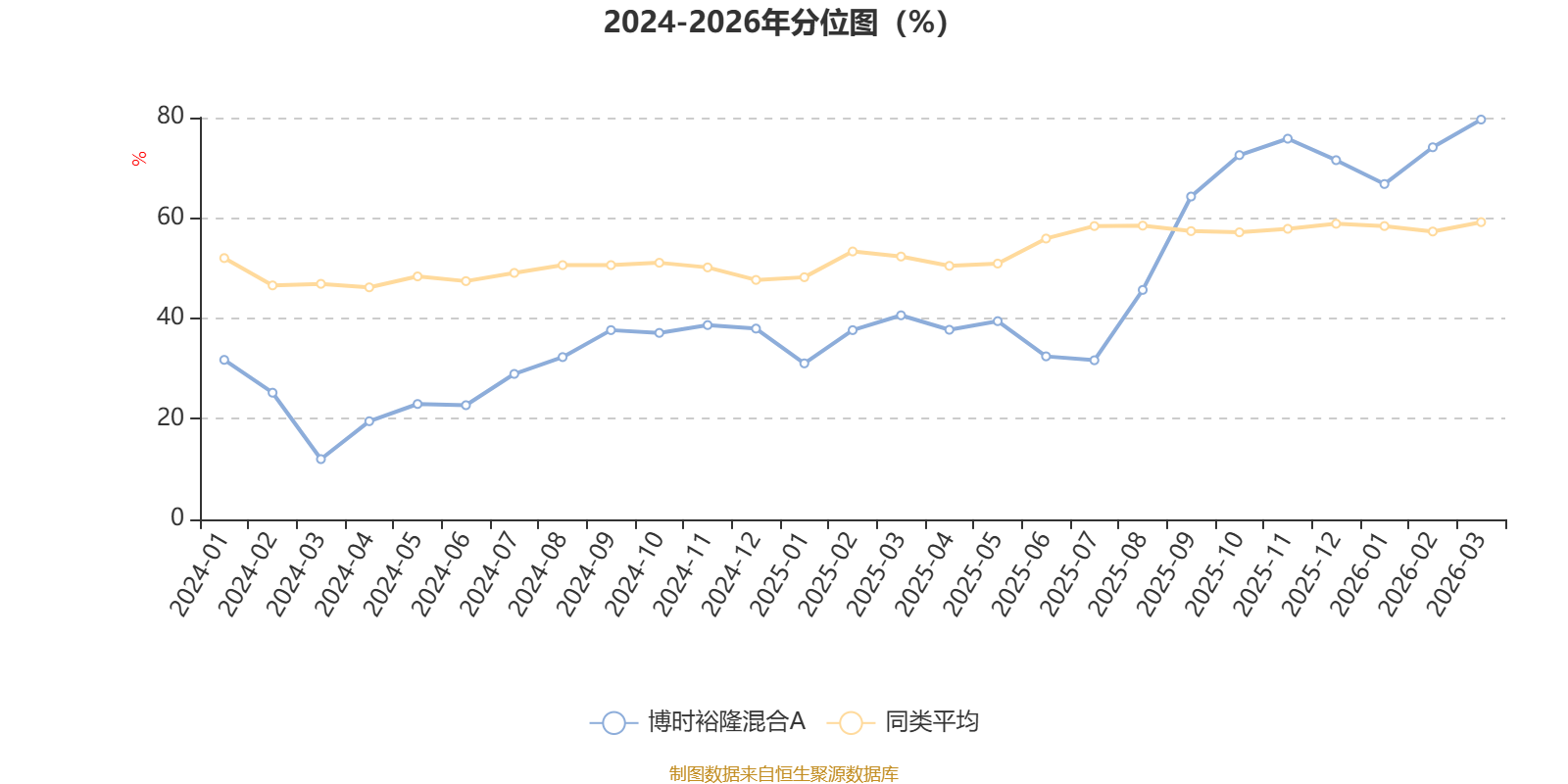 通过所选区间该基金净值增长率分位图,可以观察该基金与同类基金业绩比较情况。图为坐标原点到区间内某时点的净值增长率在同类基金中的分位数。