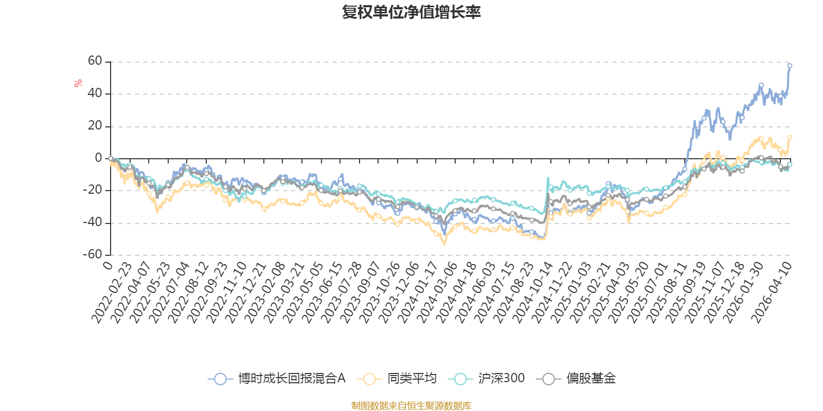 截至4月10日,博时成长回报混合A近三个月复权单位净值增长率为17.52%,位于同类可比基金26/229;近半年复权单位净值增长率为26.17%,位于同类可比基金45/229;近一年复权单位净值增长率为133.76%,位于同类可比基金36/229;近三年复权单位净值增长率为75.96%,位于同类可比基金43/172。