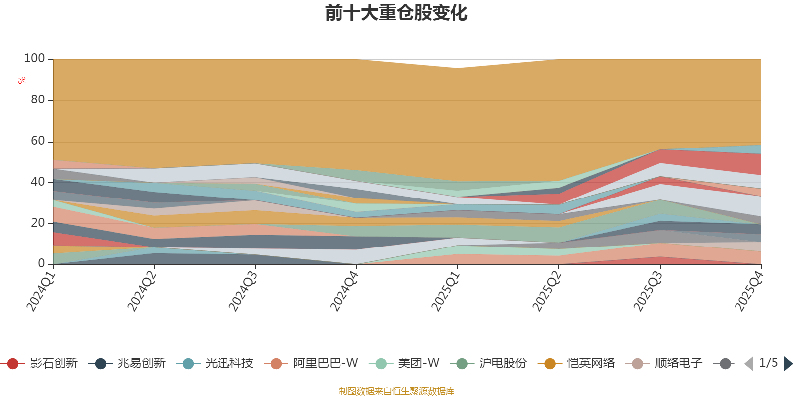 截至2025年末,基金十大重仓股分别是中际旭创、新易盛、立讯精密、阿里巴巴-W、工业富联、顺络电子、飞荣达、领益智造、中石科技、开普云。