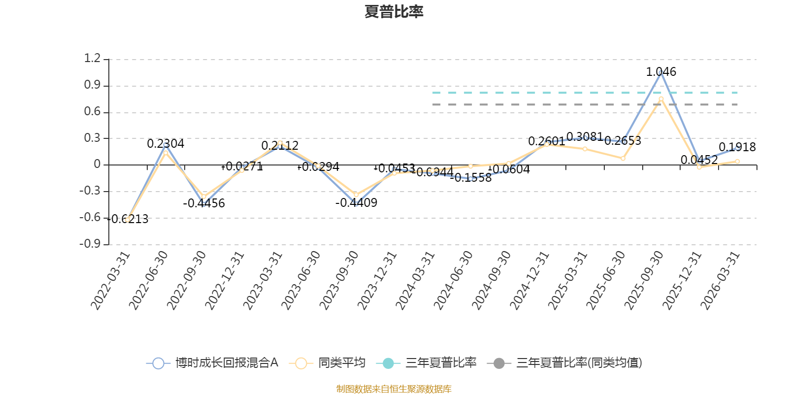 截至3月31日,基金近三年夏普比率为0.8191,位于同类可比基金45/168。