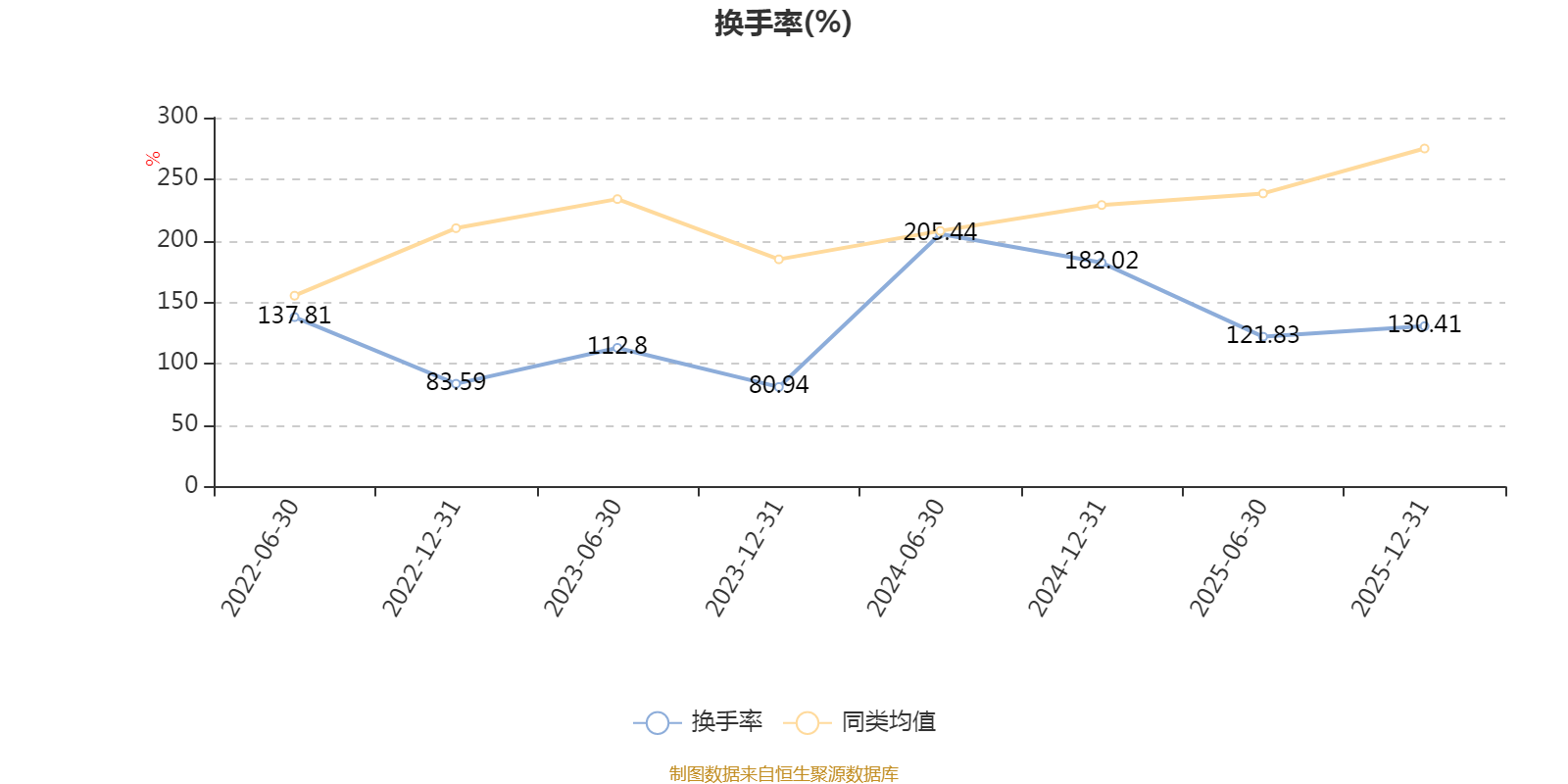 截至2025年12月31日,基金最近一年换手率约254.85%,持续低于同类均值。