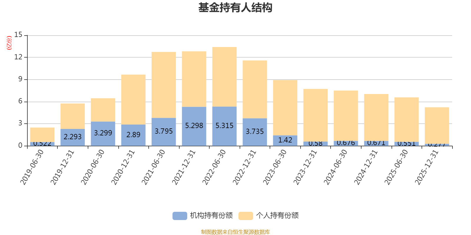 截至2025年12月31日,基金持有人共计4万户,合计持有5.23亿份。其中管理人员工持有45.01万份,占比0.09%,机构持有份额占比5.30%,个人投资者占比94.70%。