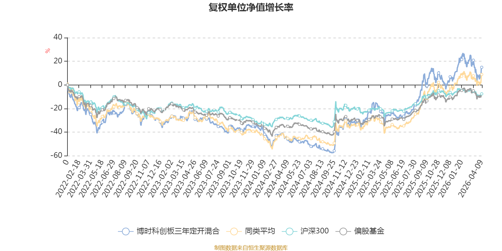 截至4月9日,博时科创板三年定开混合近三个月复权单位净值增长率为-3.64%,位于同类可比基金162/229;近半年复权单位净值增长率为0.77%,位于同类可比基金130/229;近一年复权单位净值增长率为64.92%,位于同类可比基金119/229;近三年复权单位净值增长率为46.76%,位于同类可比基金79/171。