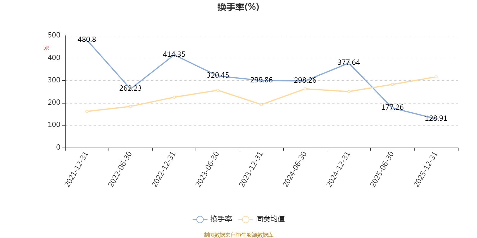 截至2025年12月31日,基金最近一年换手率约309.17%,持续1年低于同类均值。