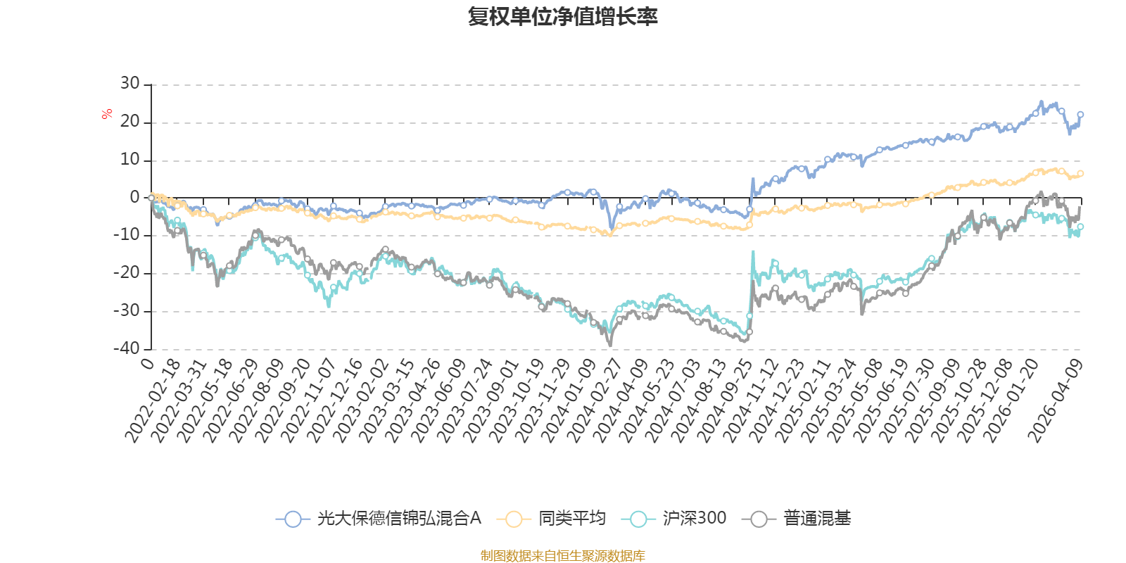 截至4月9日,光大保德信锦弘混合A近三个月复权单位净值增长率为0.61%,位于同类可比基金212/629;近半年复权单位净值增长率为3.40%,位于同类可比基金88/629;近一年复权单位净值增长率为11.75%,位于同类可比基金125/629;近三年复权单位净值增长率为24.63%,位于同类可比基金41/581。