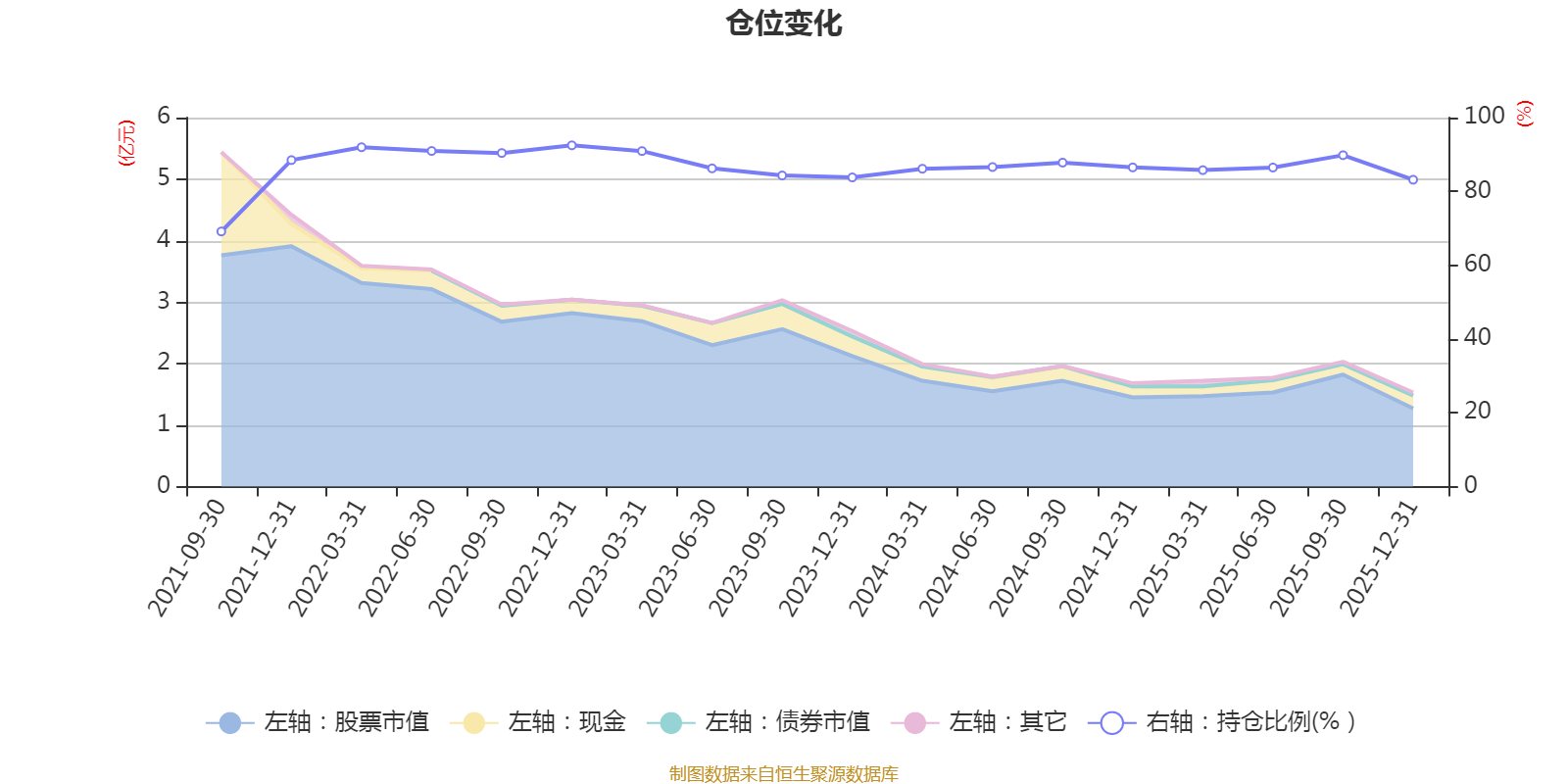 据定期报告数据统计,近三年平均股票仓位为86.46%,同类平均为86.7%。2022年末基金达到92.48%的最高仓位,2021年三季度末最低,为69.13%。