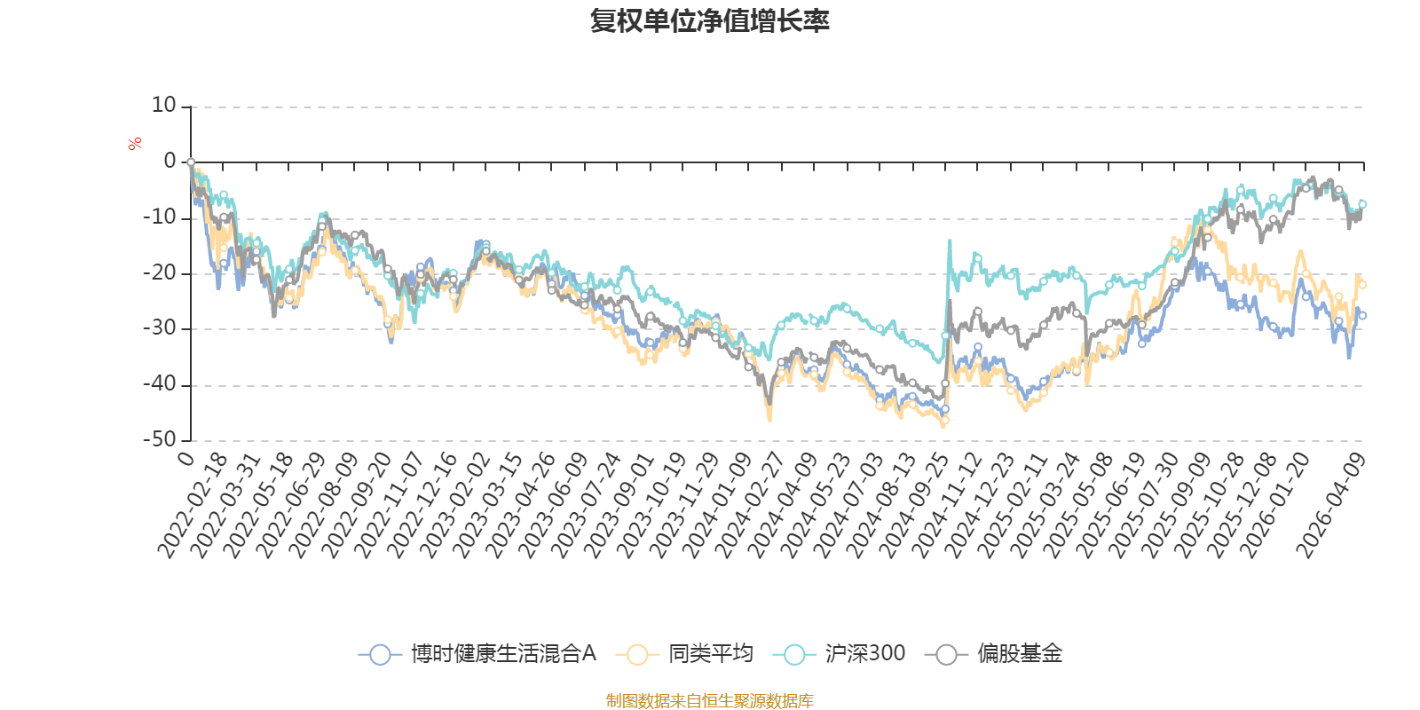截至4月9日,博时健康生活混合A近三个月复权单位净值增长率为-6.15%,位于同类可比基金51/106;近半年复权单位净值增长率为-7.35%,位于同类可比基金39/106;近一年复权单位净值增长率为16.32%,位于同类可比基金83/104;近三年复权单位净值增长率为-9.50%,位于同类可比基金52/78。