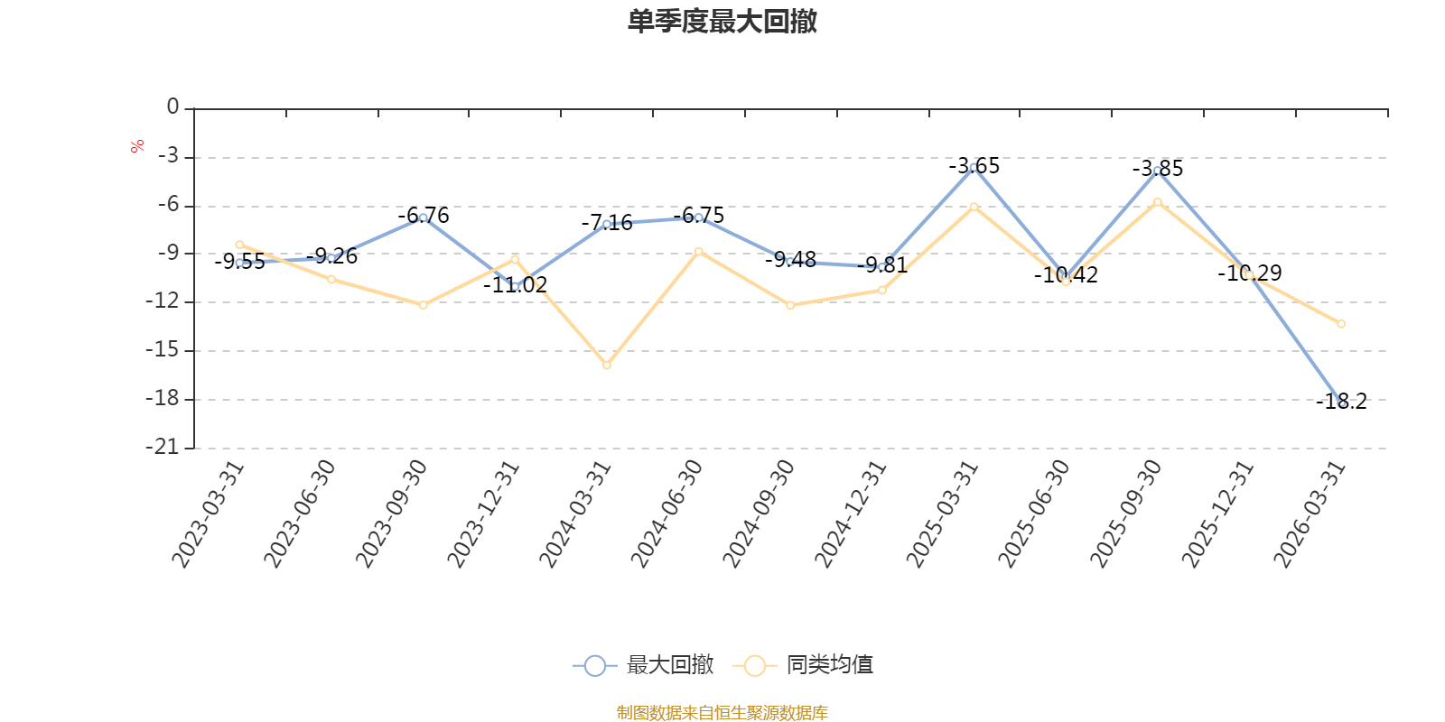 截至4月9日,基金近三年最大回撤为23.1%,同类可比基金排名50/392。单季度最大回撤出现在2026年一季度,为18.2%。