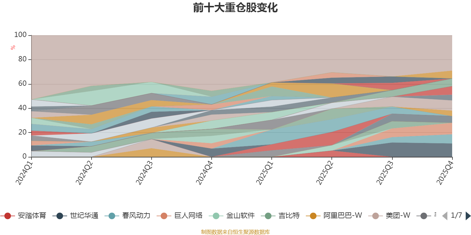 截至2025年末,基金十大重仓股分别是世纪华通、巨人网络、江淮汽车、春风动力、完美世界、众鑫股份、洁雅股份、恺英网络、中宠股份、新澳股份。