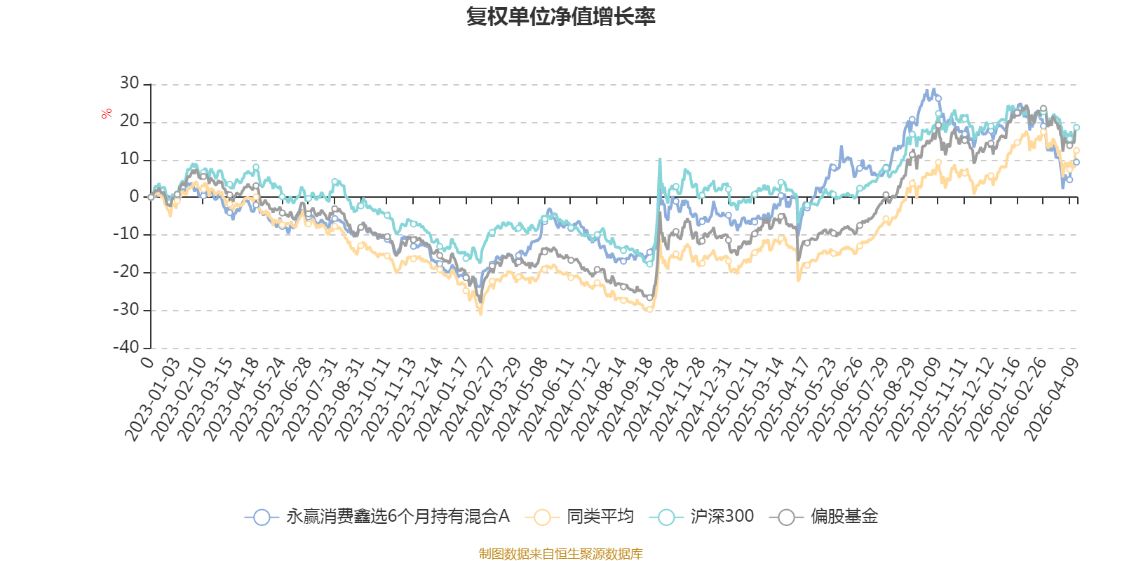 截至4月9日,永赢消费鑫选6个月持有混合A近三个月复权单位净值增长率为-10.43%,位于同类可比基金624/689;近半年复权单位净值增长率为-13.38%,位于同类可比基金635/689;近一年复权单位净值增长率为17.79%,位于同类可比基金555/685;近三年复权单位净值增长率为10.21%,位于同类可比基金219/417。