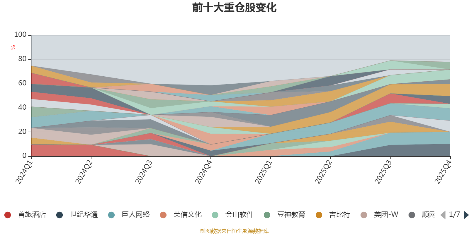 该基金持股集中度较高。截至2025年末,基金十大重仓股分别是世纪华通、恺英网络、完美世界、巨人网络、三七互娱、腾讯控股、哔哩哔哩-W、焦点科技、中国东方教育、上海电影。