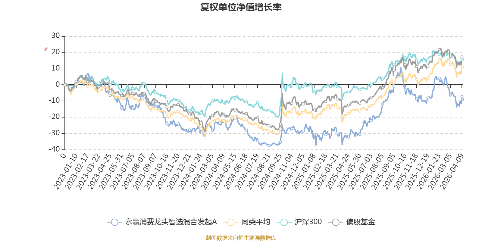 截至4月9日,永赢消费龙头智选混合发起A近三个月复权单位净值增长率为-8.55%,位于同类可比基金590/689;近半年复权单位净值增长率为-13.24%,位于同类可比基金633/689;近一年复权单位净值增长率为37.41%,位于同类可比基金337/685;近三年复权单位净值增长率为-9.77%,位于同类可比基金340/417。