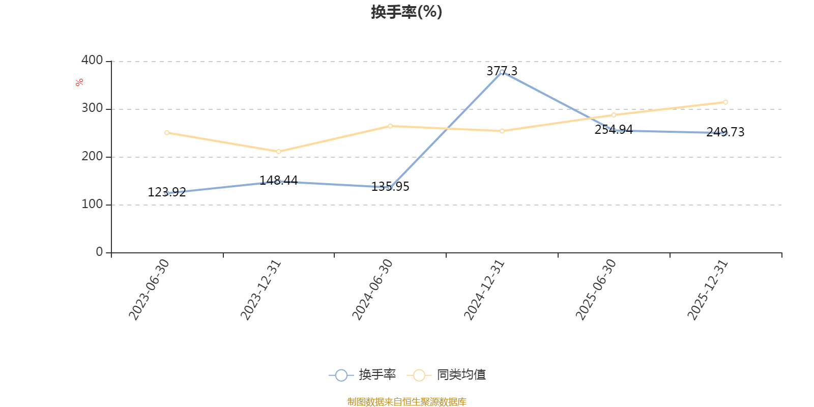 截至2025年12月31日,基金最近一年换手率约432.49%,持续1年低于同类均值。