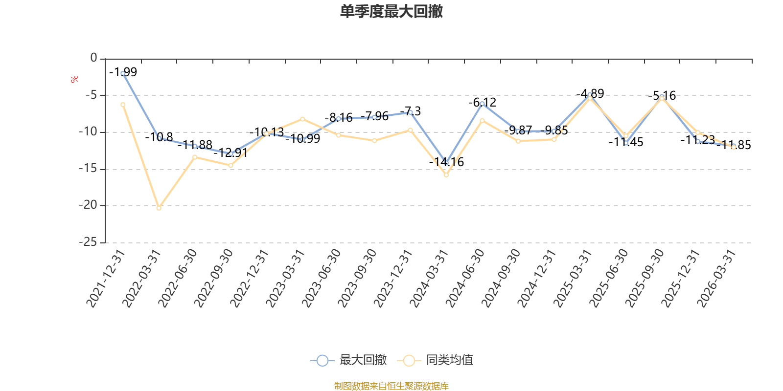 截至4月9日,基金近三年最大回撤为25.43%,同类可比基金排名59/259。单季度最大回撤出现在2024年一季度,为14.16%。