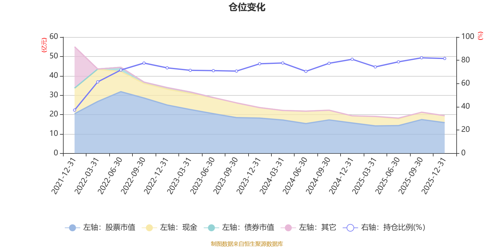 据定期报告数据统计,近三年平均股票仓位为76.12%,同类平均为86.12%。2025年三季度末基金达到82.16%的最高仓位,2021年末最低,为37.17%。