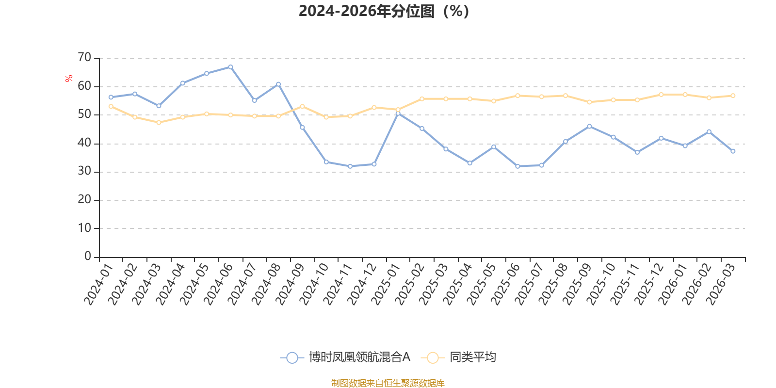 通过所选区间该基金净值增长率分位图,可以观察该基金与同类基金业绩比较情况。图为坐标原点到区间内某时点的净值增长率在同类基金中的分位数。