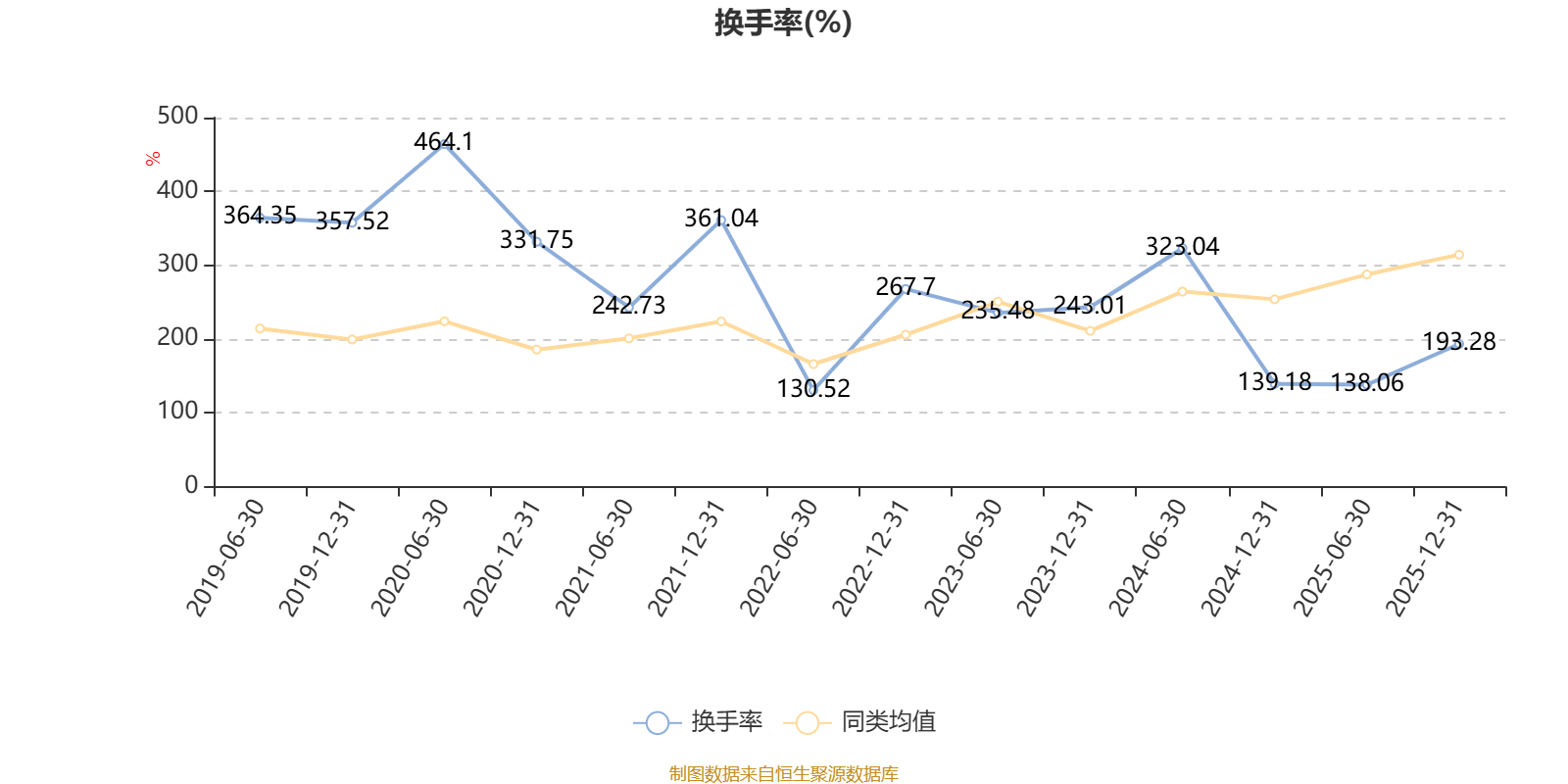 截至2025年12月31日,基金最近一年换手率约330.47%,持续1年低于同类均值。
