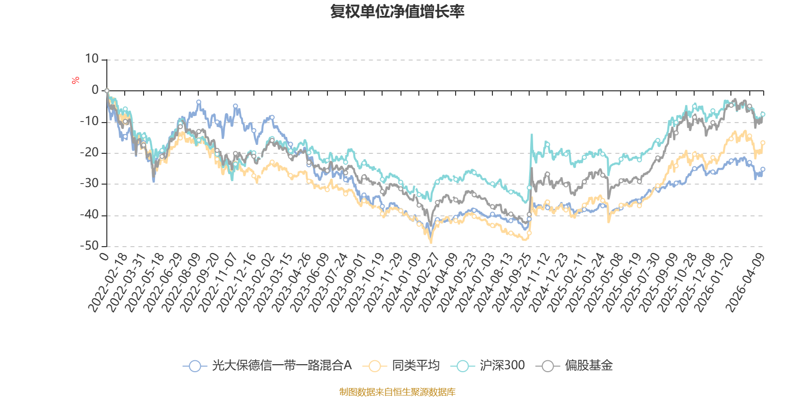 截至4月9日,光大保德信一带一路混合A近三个月复权单位净值增长率为-2.55%,位于同类可比基金408/689;近半年复权单位净值增长率为4.33%,位于同类可比基金265/689;近一年复权单位净值增长率为24.75%,位于同类可比基金462/685;近三年复权单位净值增长率为-6.65%,位于同类可比基金326/417。