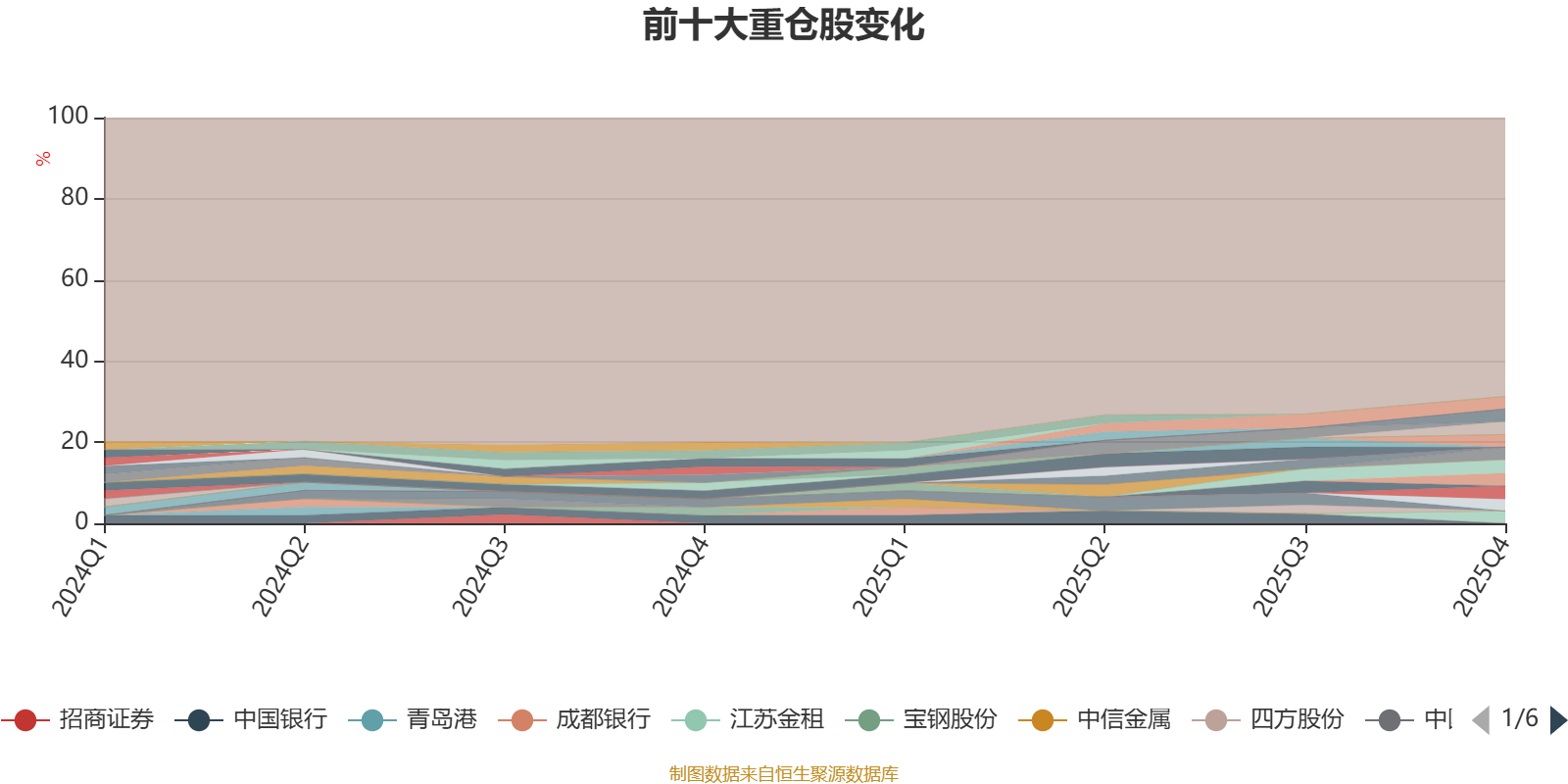 截至2025年末,基金十大重仓股分别是兖矿能源、四川路桥、云天化、中国海油、南钢股份、渝农商行、中谷物流、江苏金租、兔宝宝、重庆银行。