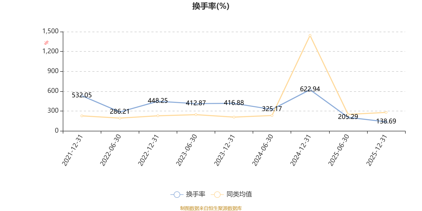 截至2025年12月31日,基金最近一年换手率约323.25%,持续1年低于同类均值。